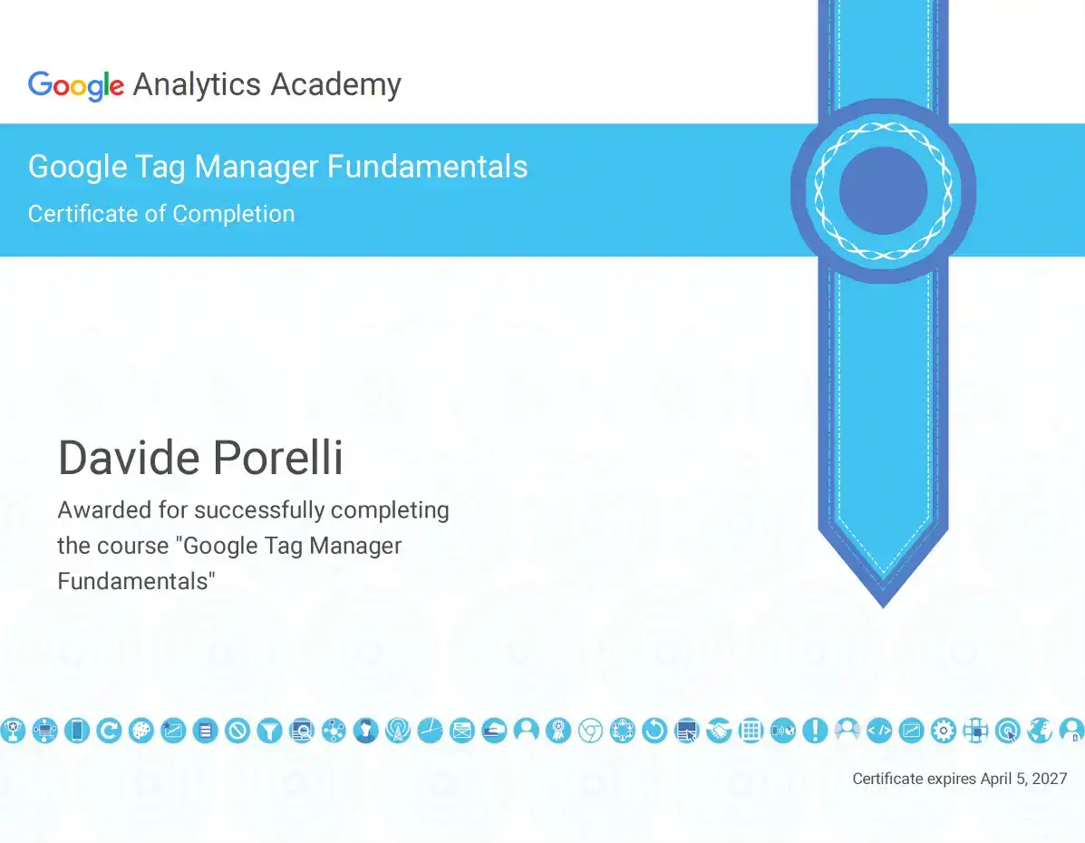 Mi occupo di sistemi di misurazione avanzata con Google Tag Manager e Google Analytics 4, con un focus sui tracciamenti per e-commerce e lead generation. La mia esperienza si concentra sulla qualità del dato, sull’attribuzione accurata delle performance e sul server-side tracking.
