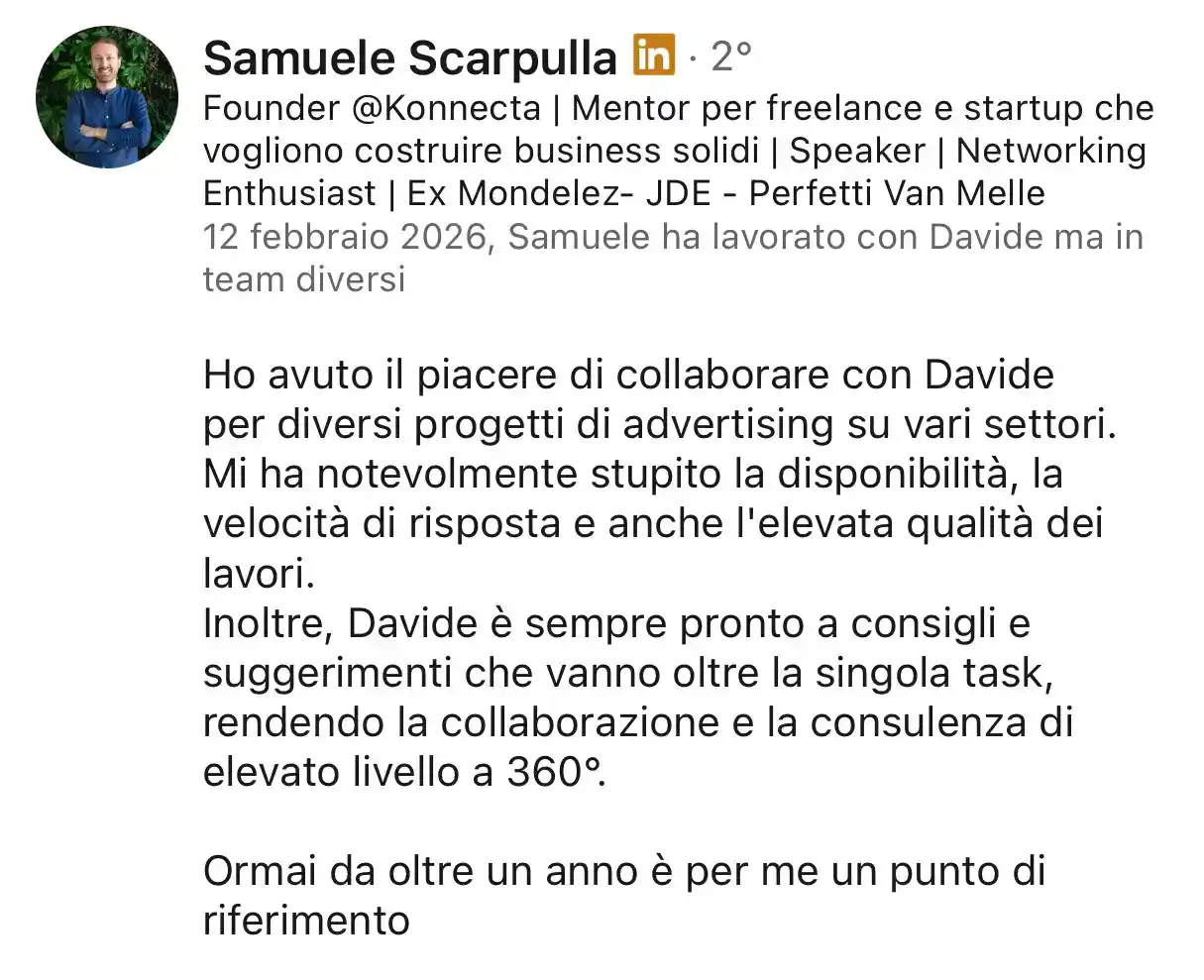 La consulenza può essere attivata su singoli progetti o in continuità, includendo anche formazione su GA4, Google Tag Manager e interpretazione dei dati.
